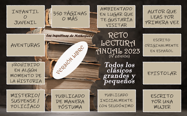 Este, que es la versión libre, consiste en cumplir todas las premisas indicadas, durante todo el año 2023. Las bases están muy bien explicadas en su blog a las que podéis acceder a través del enlace del título.